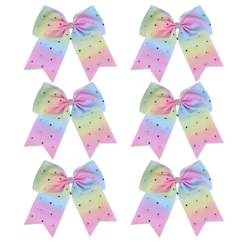 8 Inch Jumbo Cheerleader Bows with Bling Fling Rhinestones Ponytail Holder Cheerleading Bows Hair Tie College (Light Rainbow)