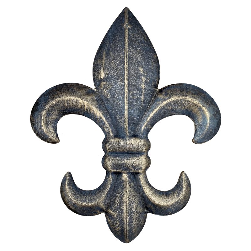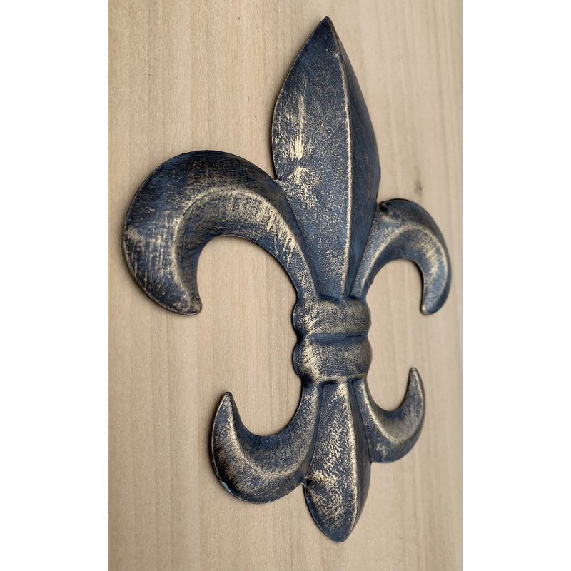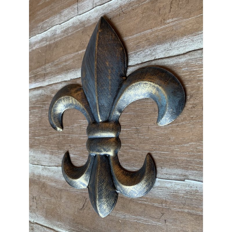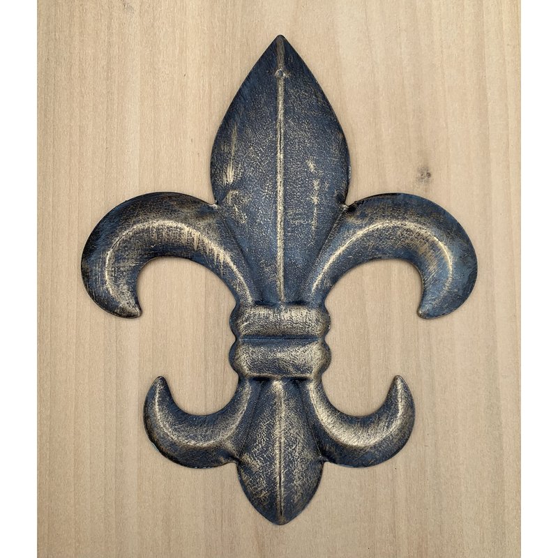 Now enjoy our medium 8" version of the popular fleur de lis wall plaques in new black and weathered bronze finishes. Durable stamped metal Fleur-De-Lis! Great for decorating any wall in the house. All metal construction with rustic painted finishes as shown. Hook on back for hanging. Measures 10" tall x 8" wide