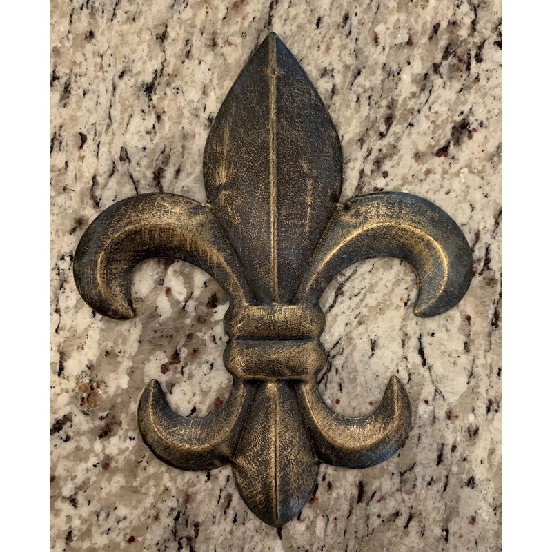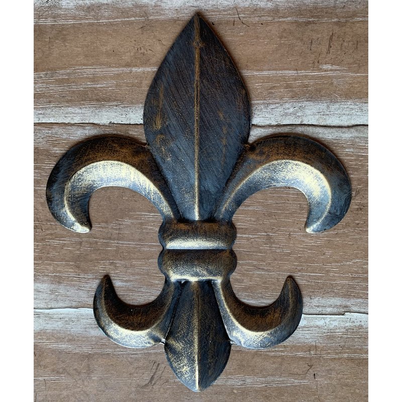 8" Metal Fleur De Lis Wall Plaque/Art with hanger - Rustic Creole Tuscan Decor (Weathered Bronze)