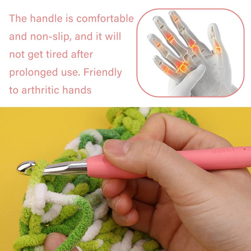 8 mm Crochet Hook, Ergonomic Handle for Arthritic Hands, Extra Long Knitting Needles for Beginners and Crocheting Yarn (8 mm)