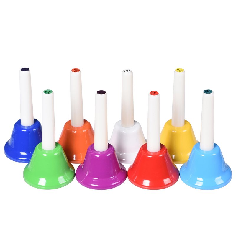 - Harmonious Variety: Elevate any space with the melodious tones of our 8 colorful metal hand bells, each boasting a unique musical pitch and equipped with a comfortable plastic handle