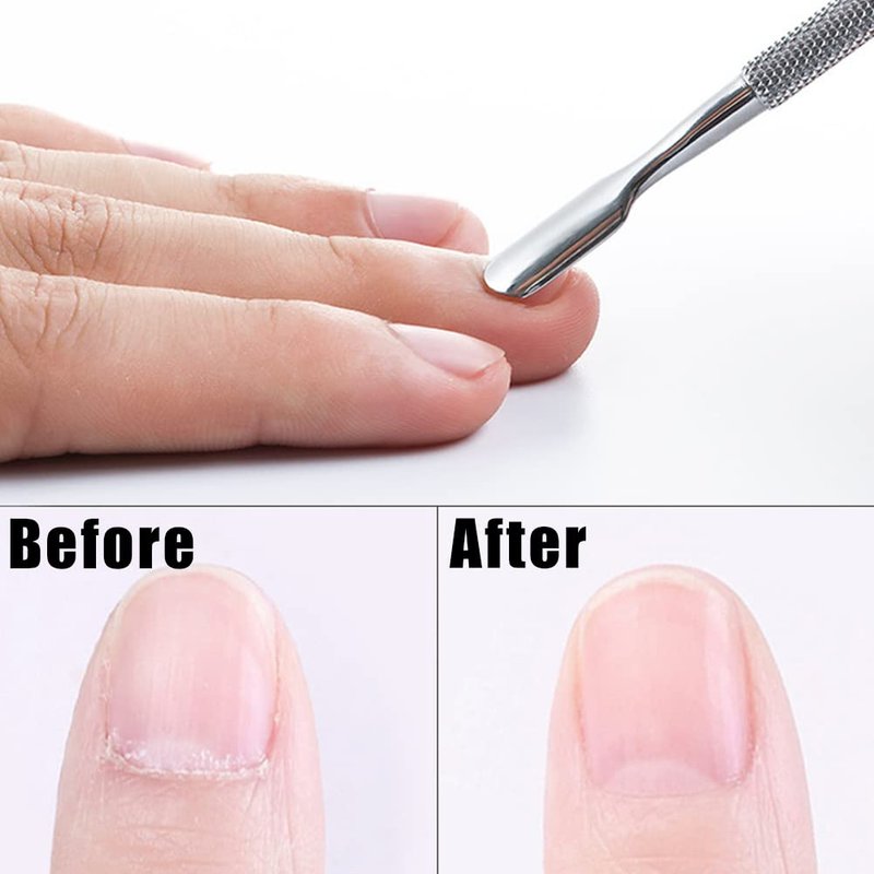 - 2-in-1 Design - The spoon-like end (curved-end) is used for pushing cuticles - the design easily helps to shape the cuticles. The blade scrapes the hard-to-remove leftover skin residue on the nail.