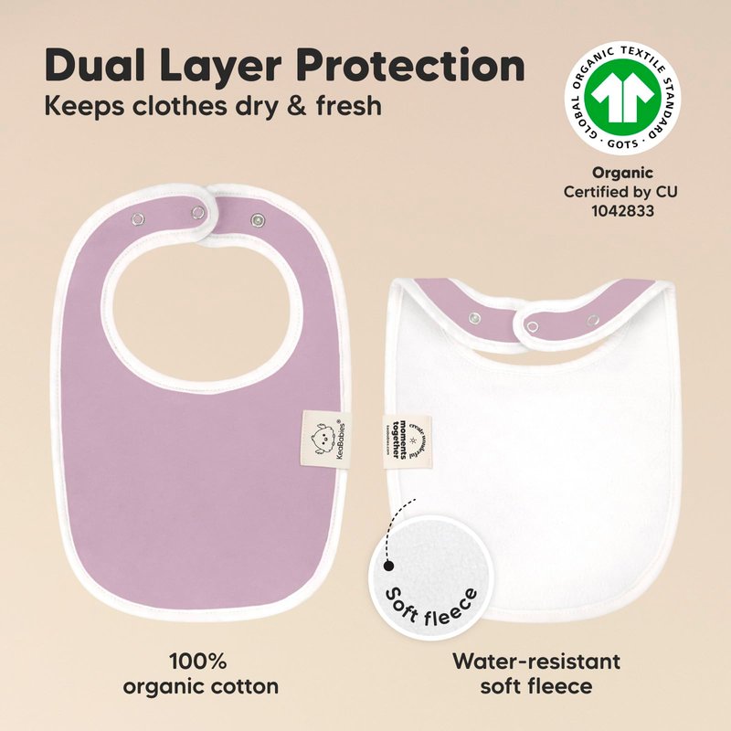 - Super Absorbent - Our organic baby boy and girl bibs are made with 100% organic cotton (GOTS-certified) and backed with water resistant fleece for added absorption. This dual layer design helps to keep your baby clean and fresh all day long. Suitable for newborns, infants, toddlers, heavy droolers and teething babies.