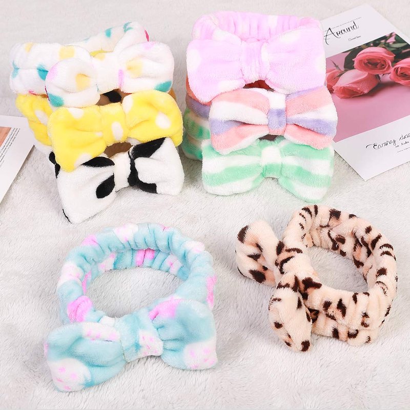 8 Pack Spa Bow Headbands, Coral Fleece Makeup Cosmetic Headband for Washing Face, Shower Terry Cloth Hair Band for Women Facial
