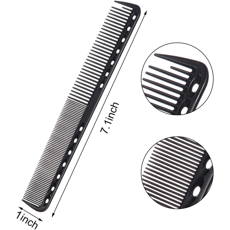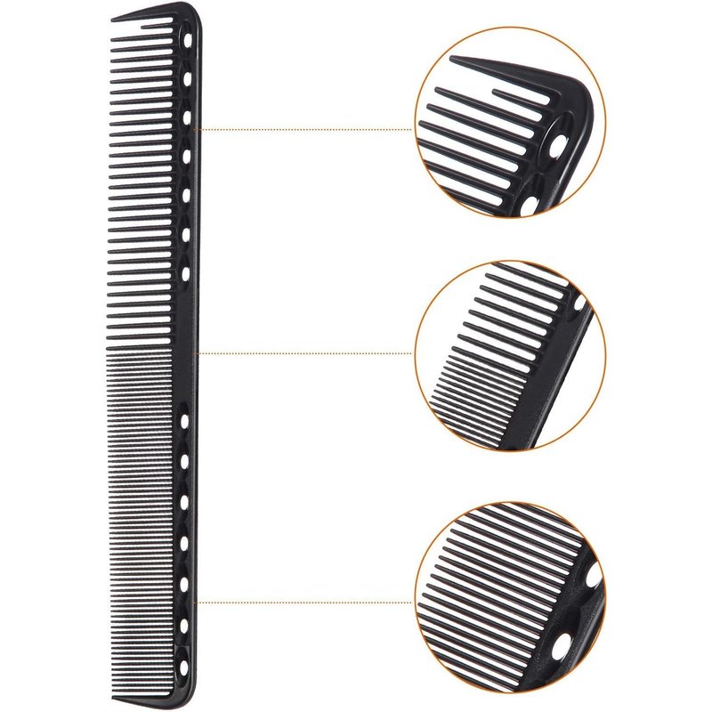 - Features: black carbon fine cutting comb, heat-resistant and anti-static, our cutting comb features a finely spaced and standard-spaced teeth design and the carbon sanded feel made for heat.