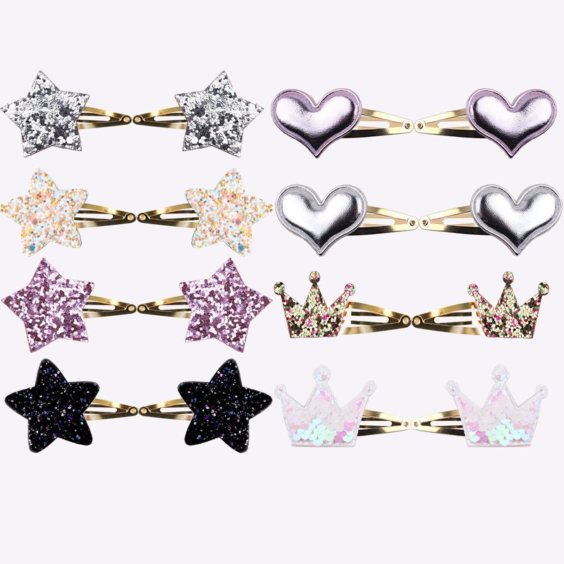 8 Pairs/16 Pack Hair Clips for Girls, Star/Crown/Heart Shaped Kids Hair Barrettes, Cute Hair Clips Metal Snap Hair Pins Sparkly Hair Styling Accessories for Girls Kids