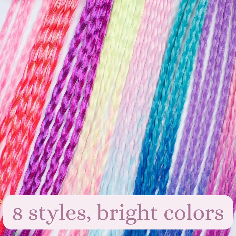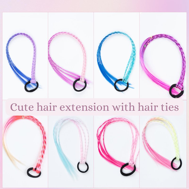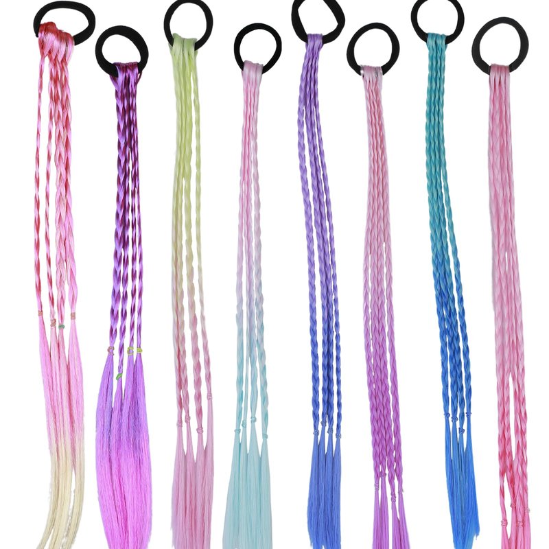 - Rainbow color hair braids: 8 different unique colors of braided ponytail extensions with elastic rubber bands. Pink color, purple color, blue color, cream color, and multicolor mix. Various colors allow you to choose easily.