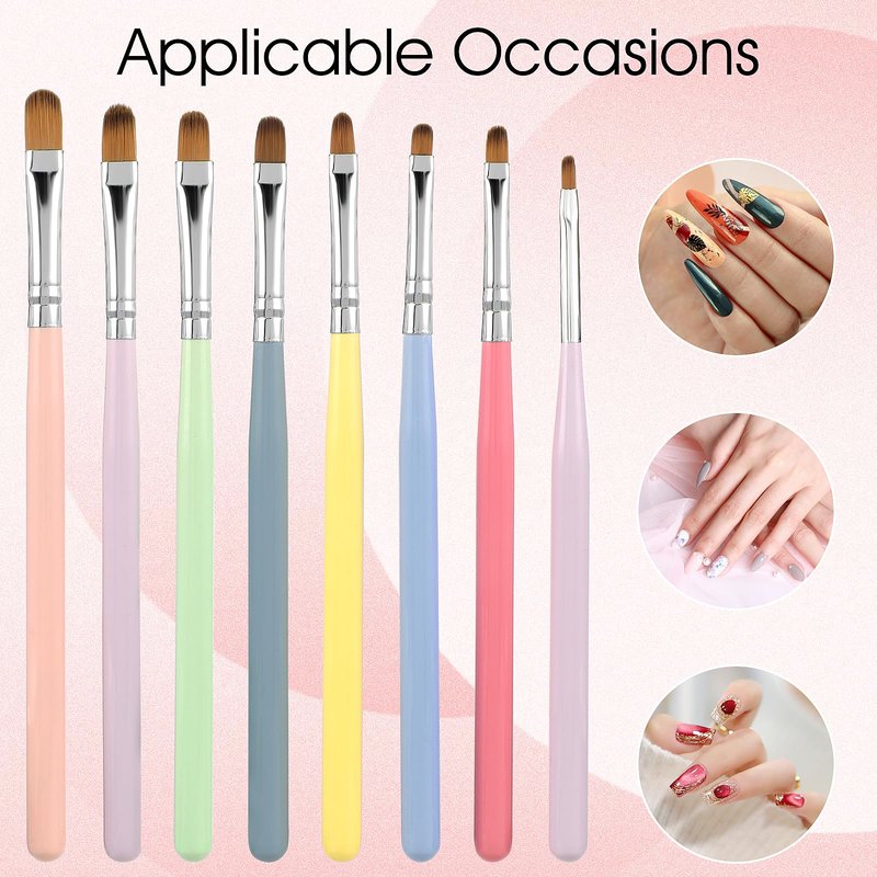 - Nail Brush Set: The set contains 8 gel nail polish brushes, 8 models, different sizes, enough to create all kinds of exquisite nails, the builder gel brush is perfect for gel nail polish nail art, delicate painting, flowers and pattern designs on nails