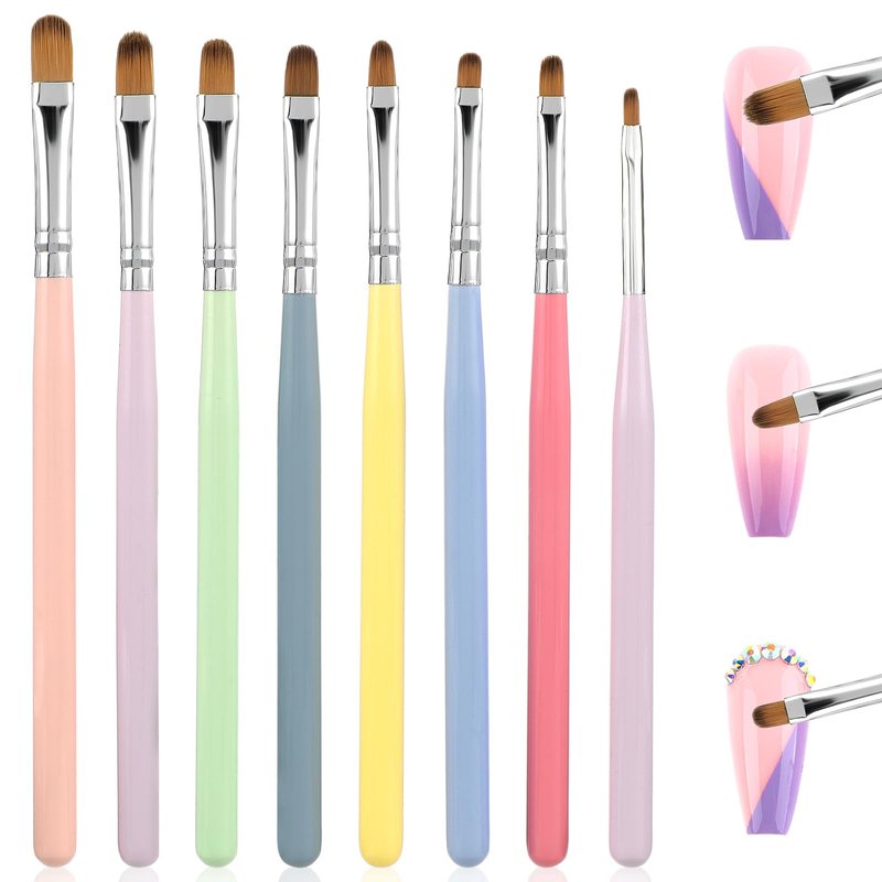 8 Pcs Gel Nail Brushes Builder Gel Brush Poly Extension Gel Brush Acrylic Nail Sculpting Brush Nail Painting Brush Pen For Home And Salon Use Diy Manicure Structure Gel Brush