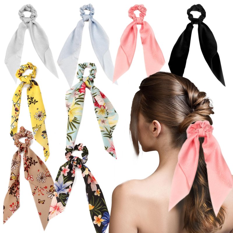 These Scarf scrunchies could be used separately, each part of hair tie will match your different need. The long hair band can be used for hand decoration or handbag decoration, etc