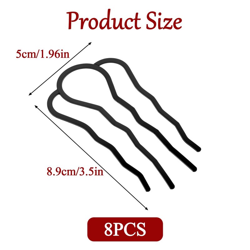 8 Pcs Hair Side Combs, Hairpins for Updos, 4 Prong Metal Updo Hair Pins, Black U-Shape Hair Sticks, Side Hair Clip for Women, Hair Pins for Buns, Hair Fork Clip Styling Tool Decorative Accessories
