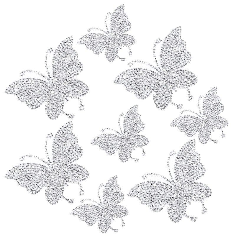 8 Pcs Rhinestone Butterfly Stickers Bling Crystal Butterfly Car Decals Stickers for Women Bling Butterfly Car Accessories Decor (Silver)