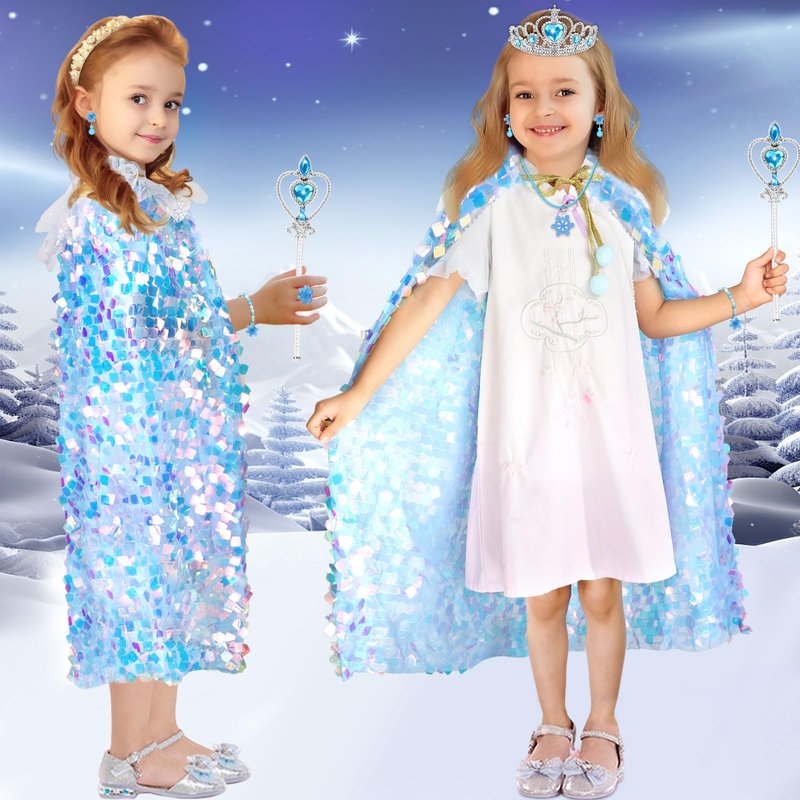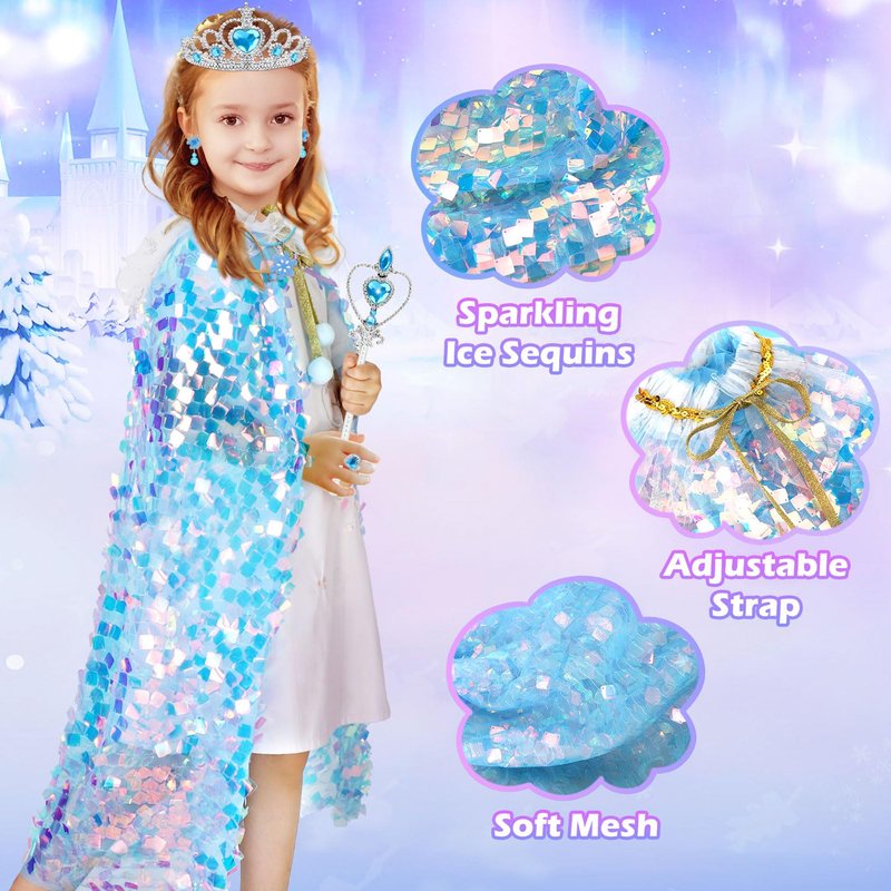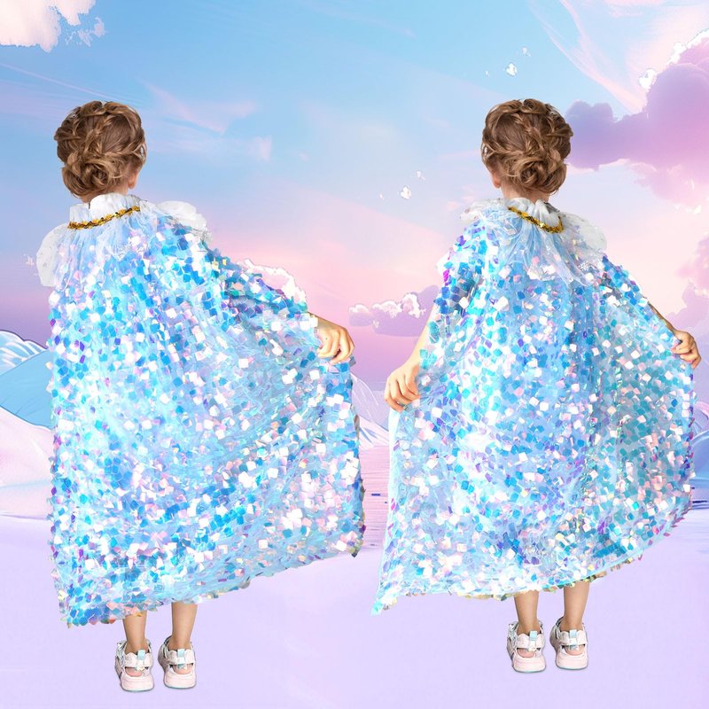 - Shiny & Colorful Toddler Dress Up Cape: Princess costumes for girls 4-6 are made of soft and comfortable transparent mesh, breathable and durable. It is studded with shining ice sequin.Let the beautiful little princess shine in the sun, moonlight and light! Every movement made by the little princess in the toddler dress up clothes is accompanied by a sense of fluidity and colorful sheen, as if she is shining like a real Ice Princess!