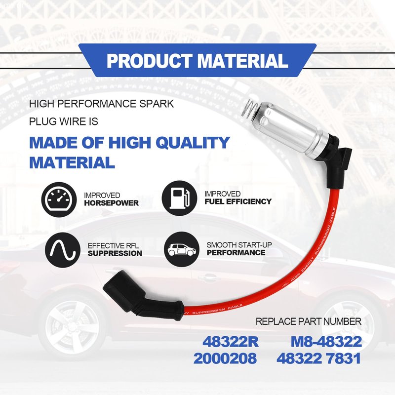 - Spark plug lgnition wire One hundred percent New. Replace# 48322R, 48322, M8-48322, 7831. Please make sure whether the part is suitable for your before buying.