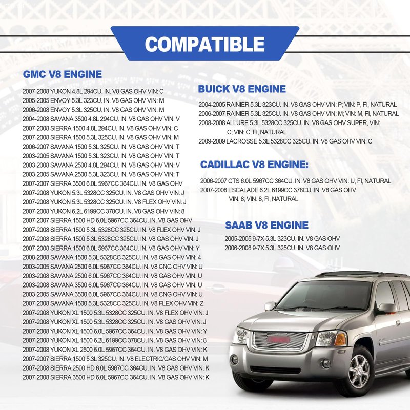 8 PCS Spark Plug Ignition Wire, 10.2mm Spiral Wound Design, Spark Plug Wire Set Compatible with 2000-2009 Chevy GMC V8 Engine, Replace# 48322R