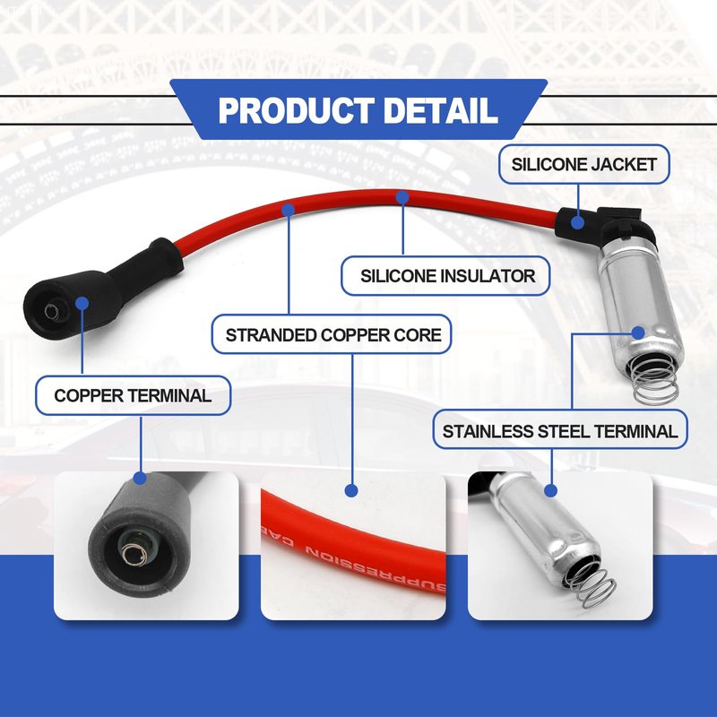 - Spark plug wires are made of High quality material, its pure copper core helps maintain lower electrode temperatures, that lower ignition demand voltage and minimize the possibility of flame.