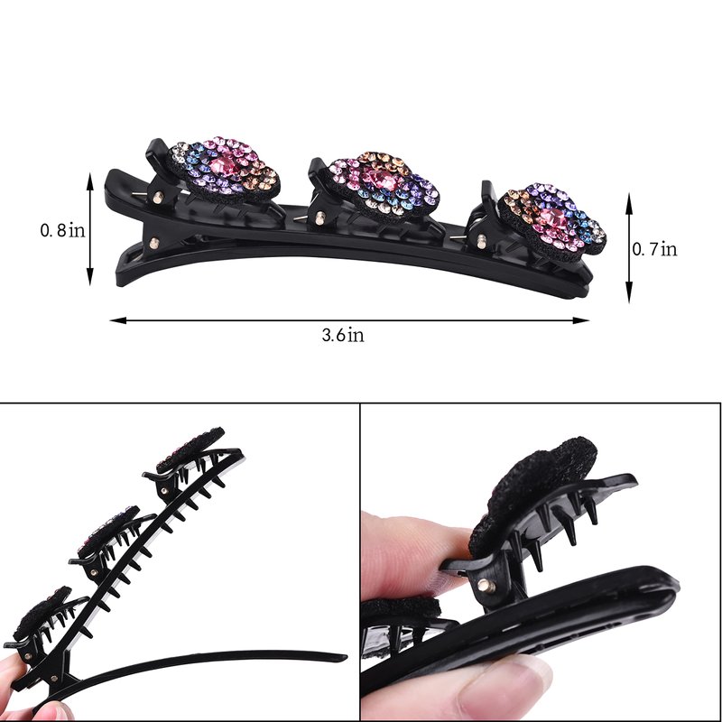 - 🎁【UNIQUE DESIGN】Our sparkling crystal stone braided barrettes are uniquely designed with double layer barrettes on top, 1 large barrette and 3 small rhinestone barrettes.