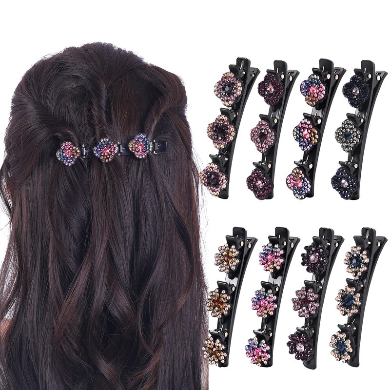 8 PCS Sparkling Crystal Stone Braided Hair Clips, Rhinestone Braided Hair Clips, Hairpin Duckbill Clip, With For Women and Girls