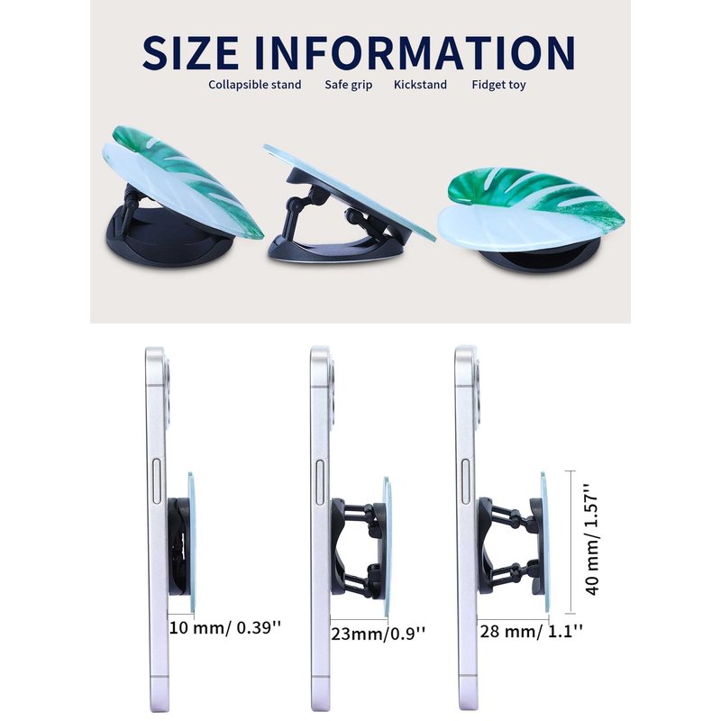 - Reliable Quality: these phone expanding stand is made of quality ABS plastic, acrylic and backing glue, which are safe and reliable, no odor, lightweight and strong adhesion, ensuring that they are firmly fixed on the mobile phone and easy to carry and use; The clear leave patterns are not easy to fade, with shiny gloss, bringing a sense of fresh style; Besides, the margins have been carefully polished, will not hurt your fingers