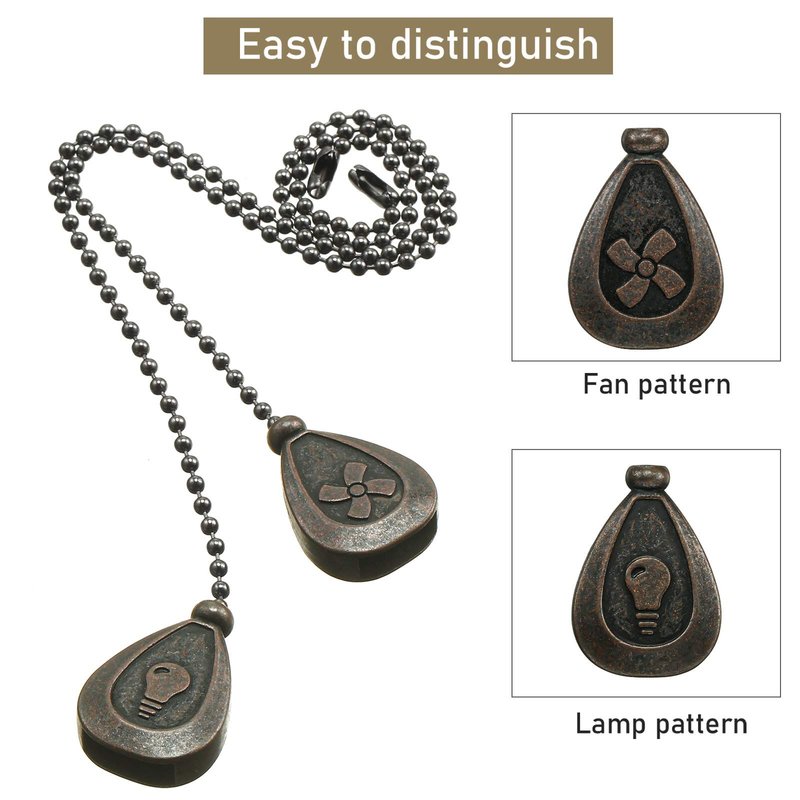 - 2 Different patterns: there are 2 styles of the 8 pieces ceiling chain extenders, 4 of which are designed for bulb styles and 4 for fan styles; Different patterns can help you identify which is the switch for lighting or fan