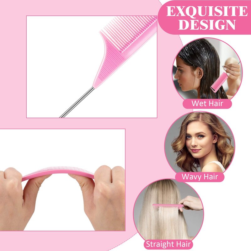 - Practical rat tail comb: the teasing combs are designed with a long and thin stainless steel pintail, which is practical for styling, parting, back combing, post styling and hair coloring, comfortable to comb and add luster and shine to dull hair, leaving hair smoother, proper size for both adults and kids, the handle is easy to hold in your hands