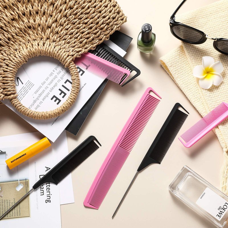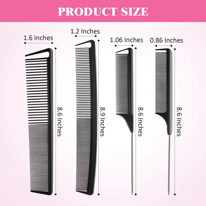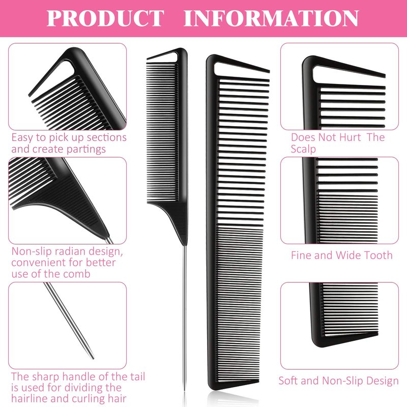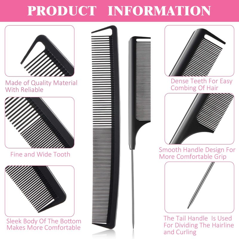 - Durable and sturdy: our combs set of rat tail comb and carbon fine cutting combs are made from a mixture of carbon fiber and plastic material, make the comb stronger, they are durable and sturdy, not easy to break or fade, can serve for a long time use; The pintail of the carbon fiber teasing combs are made of smooth stainless steel, the smooth surface will not pulling or damaging you hair