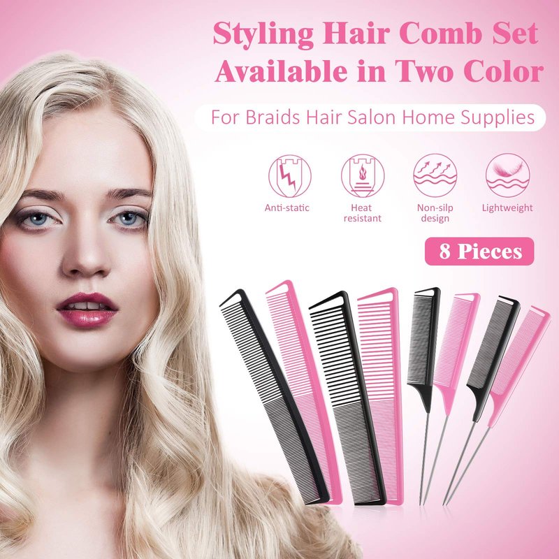 - Various combs set: the package includes 8 pieces of hair combs in 4 different styles and sizes, each style has 2 pieces, one in pink and another in black, you can choose a suitable one according to your actual needs, the practical combination of combs are easy for you to create your hairstyles