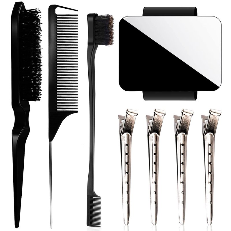 - Brush and Comb: dual edge brush is very suitable for combing hairline, bangs, eyelashes and eyebrows . Bristle brush help to distribute oil from your roots to your ends.styling comb for daily combing and collocation of alligator clips for hair styling.
