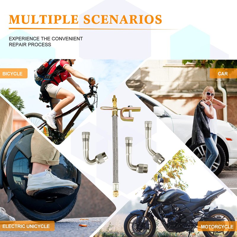 These valve stem extenders can be applied to most bicycles, cars, motorcycles, trailers and recreational vehicles with standard American tire valves. You can also give them to family and friends to use together.