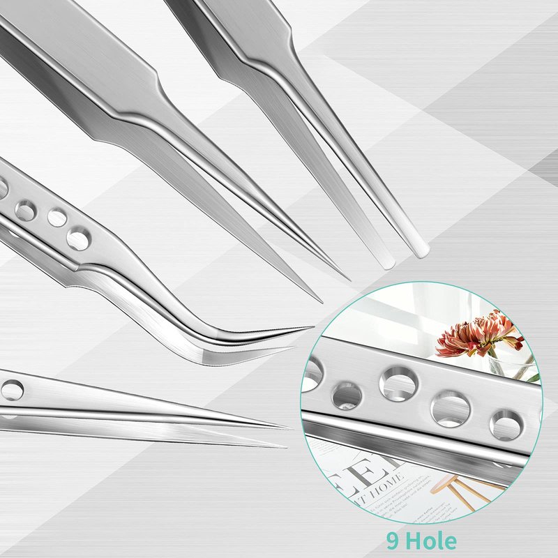 - Easy to carry and store: the 9 holes straight curved tip tweezers come with a transparent box, easy for you to store, preventing from the dust and dirt, while also protecting from losing or scattered around, and it's also convenient to carry to various places, helping you complete various delicate and detailed work
