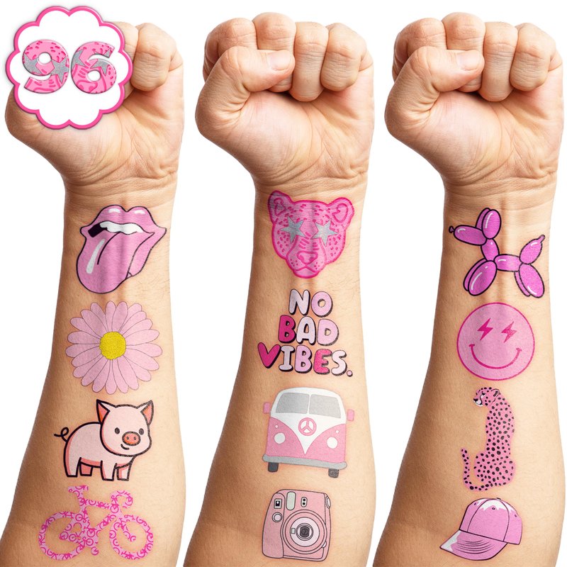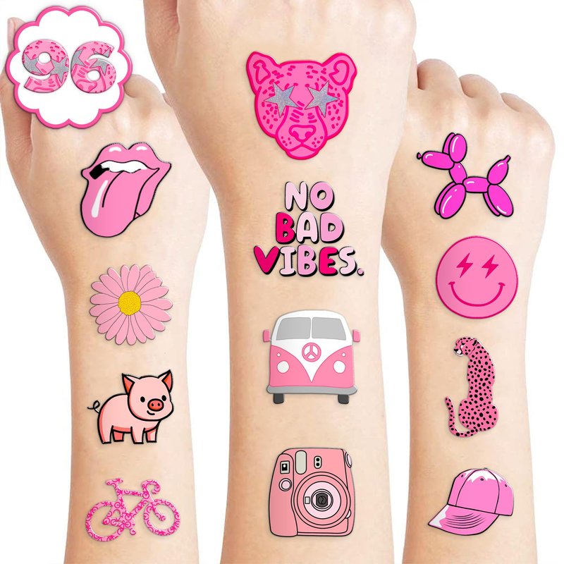 🌸【PERFECT TATTOOS FOR THEMED PINK PASTEL PREPPY PARTY DECORATIONS】: Pink temporary tattoo stickers include 8 sheets in total. There are 96Pcs super cute tattoo differences. Perfect for giving out party favors and holiday theme small gifts. The size of each sheet is 6.1 * 3.1 inches. One size fits a Adults and kids. 🎁【GREAT GIFT IDEAS FOR PINK PASTEL PREPPY PARTY SUPPLIES DECORATIONS】: Tattoos with a pink pastel PREPPY theme will be the perfect gift for girls' party. You should not pass up this thoughtful gift for your children. 🥳【ADD A TOUCH OF FUN】: Are you tired of mundane gifts? We've got you covered! Our collection of adorable and vibrant temporary tattoo designs can be applied to laptops, backpacks, desks, suitcases, books, water cups, and more. These playful elements will surely elevate your visual experience and bring a touch of joy to everyday items. 🌍【SAFE AND HIGH QUALITY】: Our temporary tattoos are made of environmentally friendly materials, and non-toxic, These tattoos are made of high-quality safety and green paper 🌸 A few notes about our PINK TATTOOS: 8 sheets + 96 tattoos means there's one for everyone - nobody gets left behind :D .Each of our temporary tattoos has a unique design with Pink, pink no bad vibes, bet, queen, pink boho car, pink dinosaur, pink daisy, face smile, power, pink pig, pink axolotl, donut, bike, pink shoe, scrunchies, gwl pwr, butterfly, love, camera, leopard, flag, strawberry milk, bow pink, cake, cap, hat, ice cream, controller, pink style, very cute, y2k, 2000s, 2000,.... Gifts idea for girls, kids …. Can be used for the y2k birthday party, bridal shower + Christmas, Halloween, y2k school supplies, baby shower! 【 Not recommended for people with a history of sensitive skin, if symptoms appear, stop using immediately】.