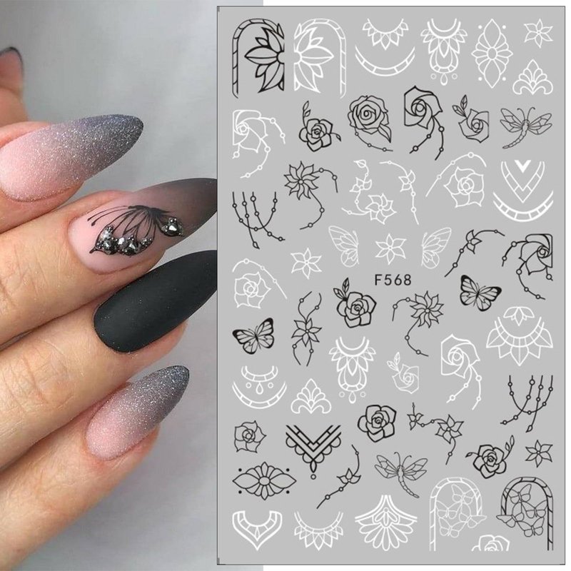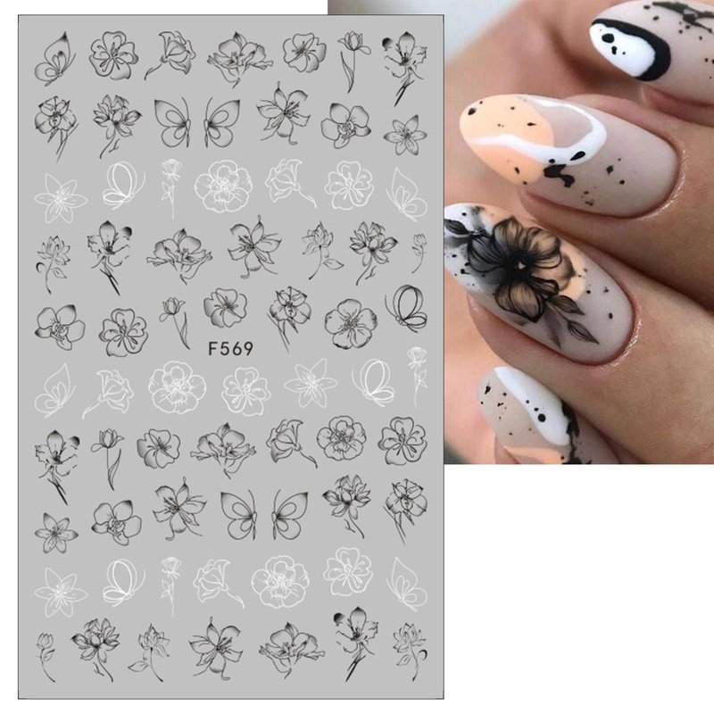 Item Type:Black Flowers Leaf Butterflies Self-Adhesive Nail Stickers Decals