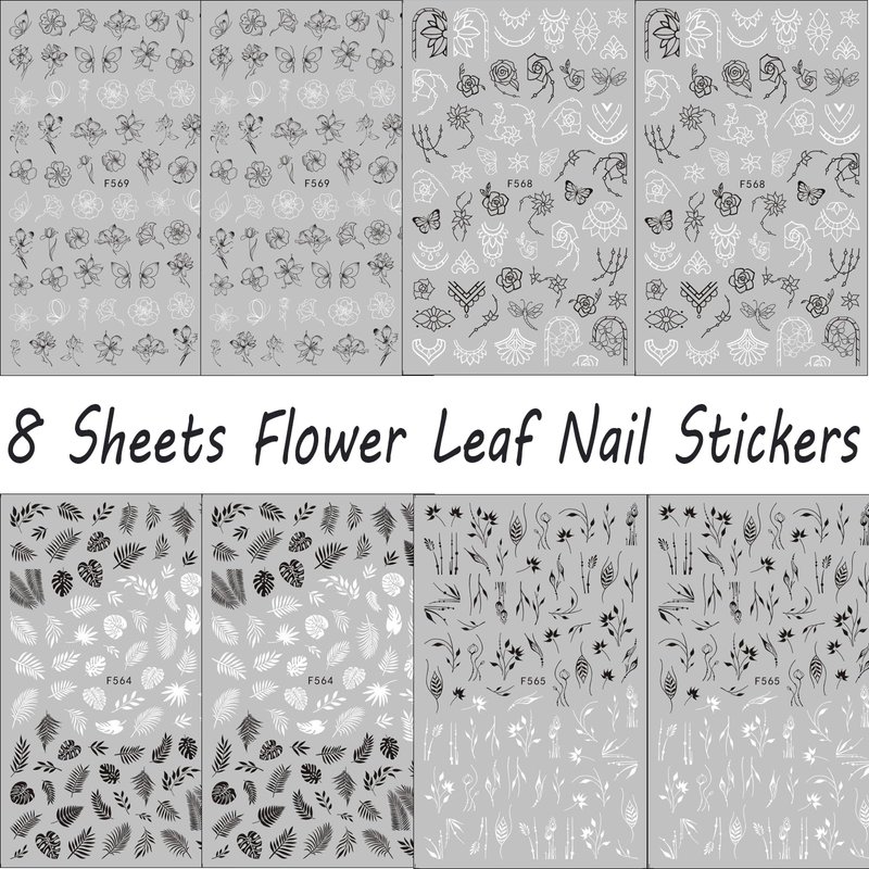 Quantity: 8 Sheets 3D Self-Adhesive Flowers Leaf Butterflies Nail Art Stickers Decals