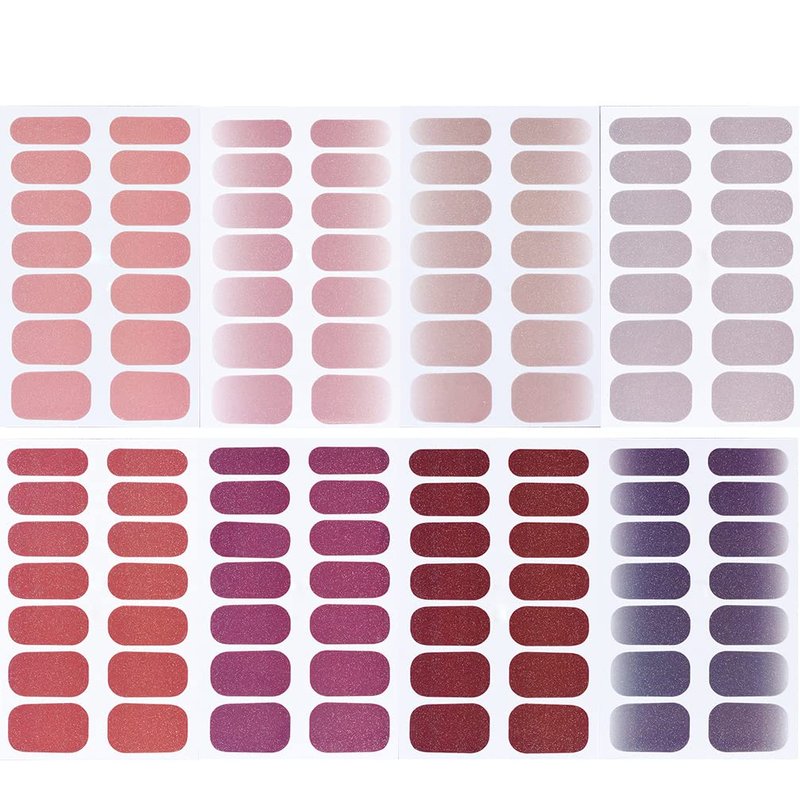 8 Sheets 1Thin Semi Cured Gel Nail Strips Pink Nail Wraps Glitter Color Full Nail Wraps Self-Adhesive Street Nail Strips Nail Art Polish Stickers Solid Nail Art Decal Strips Sticker Nails for Women