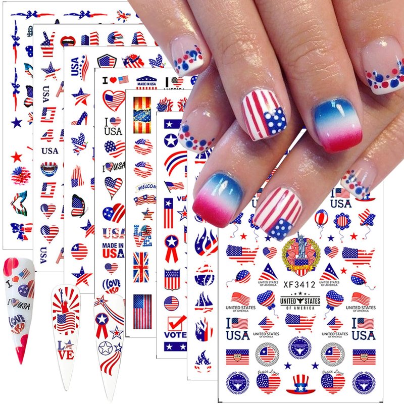 - Quantity:You will get 8 sheets delicate American Independence Day nail art stickers ,variety of styles, can be used for nail decoration.