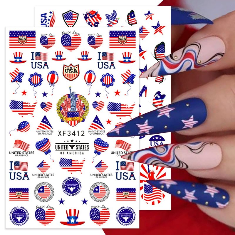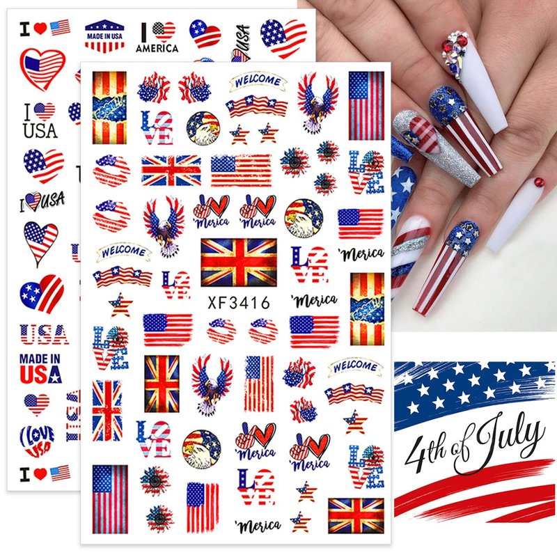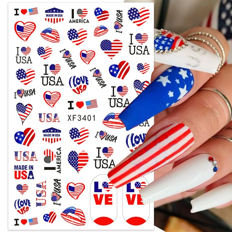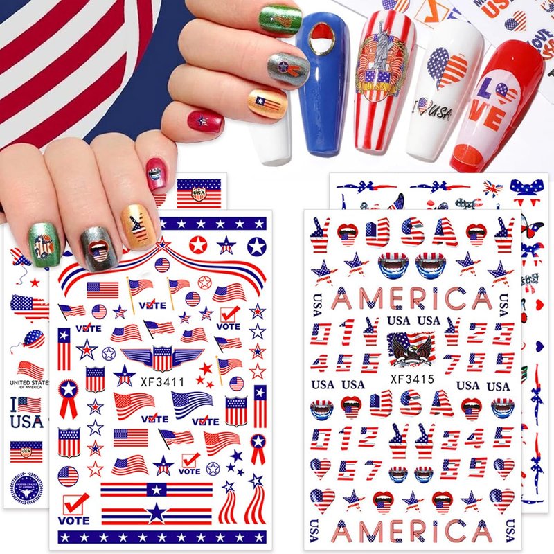 - Easy to Use: 4th of July nail art stickers for nail art are self-adhesive, just remove sticker then stick this 3d nail decals on your nail. Apply top coat gel to seal to make the stickers last longer.