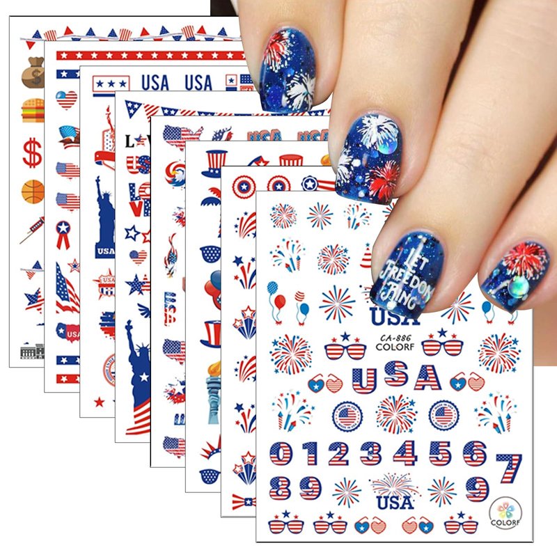 - Excellent Nail Sticker Set: 8 sheets Independence Day firework stickers are the excellent fashion accessories.Large number of different patterns for you to use and replace in daily life, nail decals are full of sensuality and elegance, various charming patterns bring you a different mood.