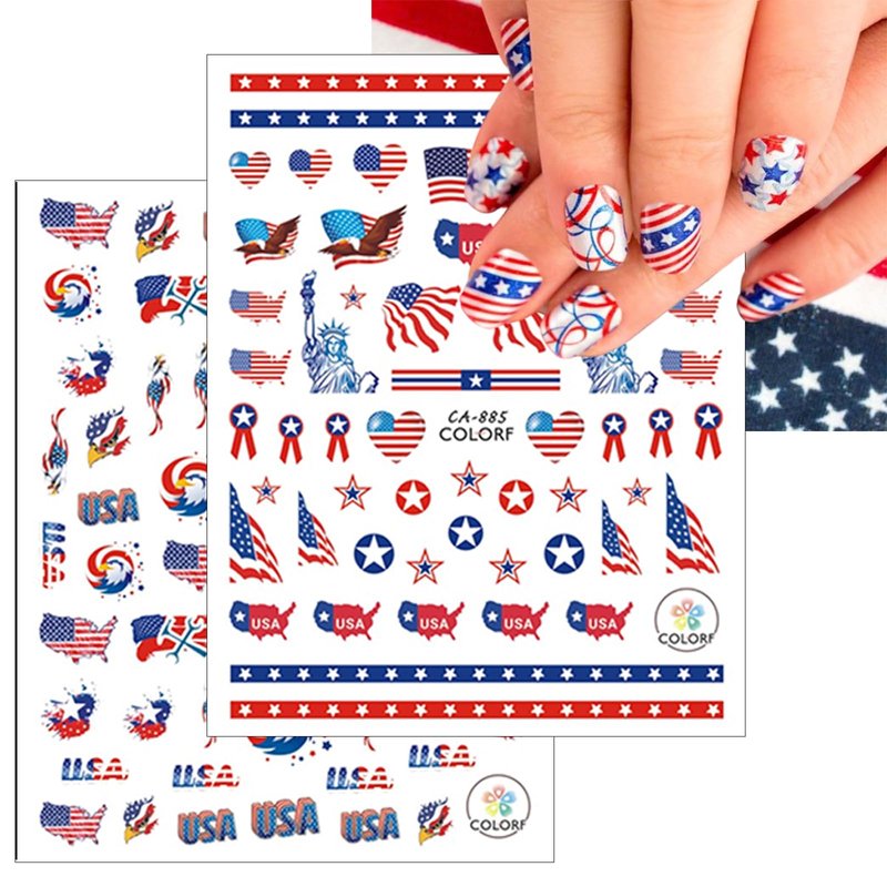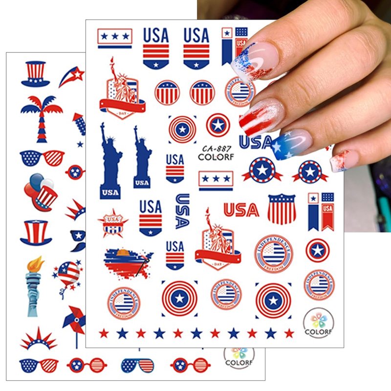 - Easy to use:Red blue white flag nail art stickers self-adhesive designs make these stickers sticking well on your nail. Just use tweezers to peel and stick it on your nail. You can also apply a top coat to make the stickers last longer.