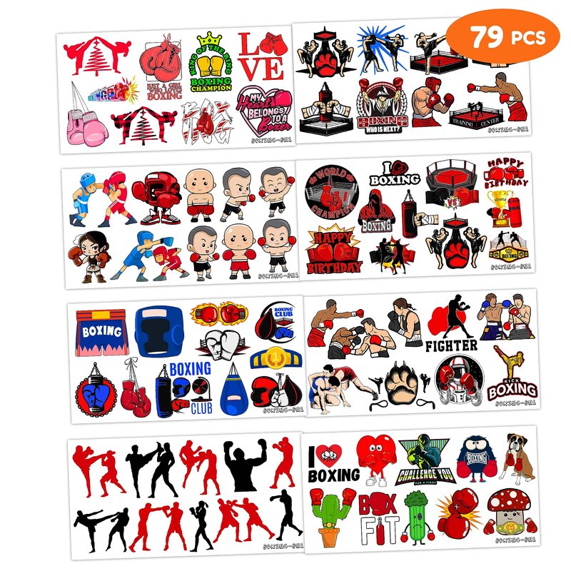8 Sheets (79PCS) Boxing Gloves Temporary Tattoo Theme Birthday Party Decorations Favors Supplies Decor Stickers For Boys Girls Kids Gifts Classroom School Prizes Rewards