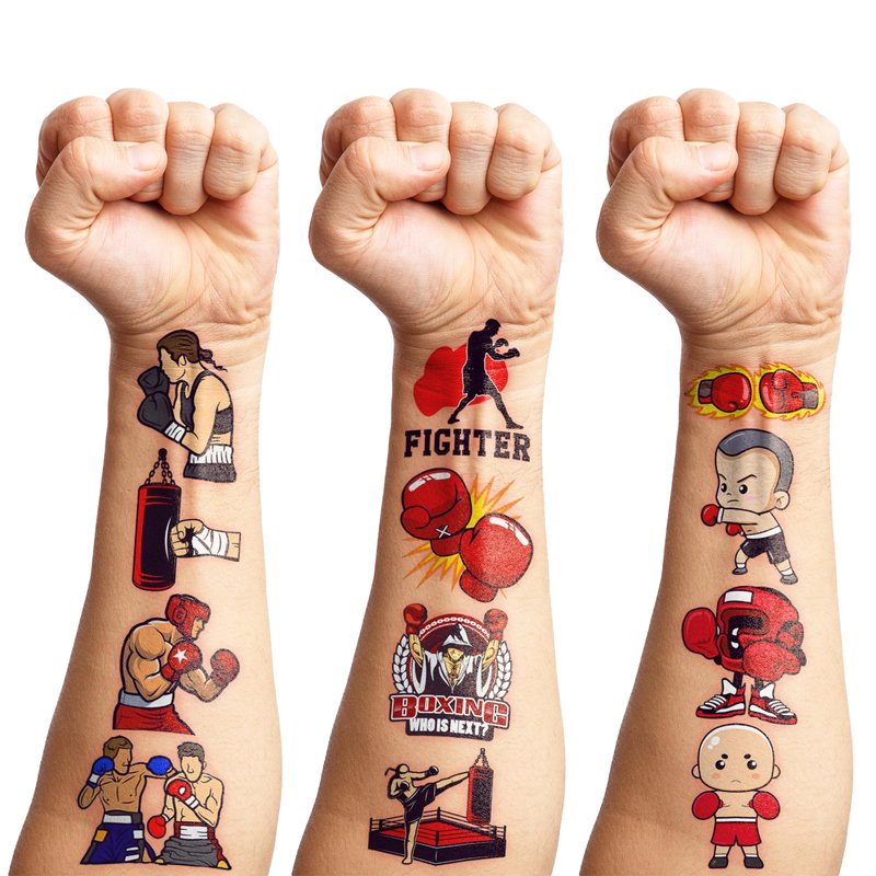 - 🥊BOXING PARTY DECORATIONS: The tattoo is the best gift for a birthday party together with the significant meaning that it says and will accommodate your expectations at birthday party, party decorations, and special celebrations. Each tattoo set covers 8 sheets in total with 96 Pcs. The dimension of each sheet is 6.1*3.1 inches, including tattoo pieces that have proportions reasonable for adults to kids. Our tattoo stickers in different styles promise to develop the impression for the party