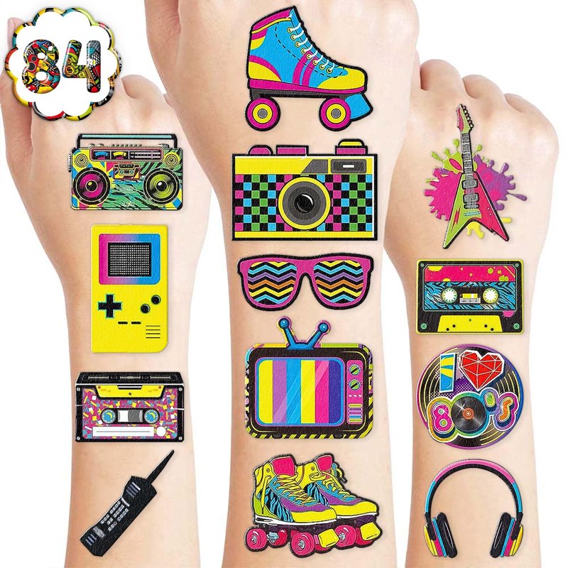 - 🎸HIP HOP BIRTHDAY PARTY DECORATION: Elevate your party to a fun and nostalgic event with these funky 80s 90S signs that showcase contemporary designs like sunglasses, CDs, TVs, and music legends covered in vibrant colors that promise to meet your requirements for lively products, easy usage, and high quality. Sure enough to believe that you have an incredible experience playing with our tattoo stickers.