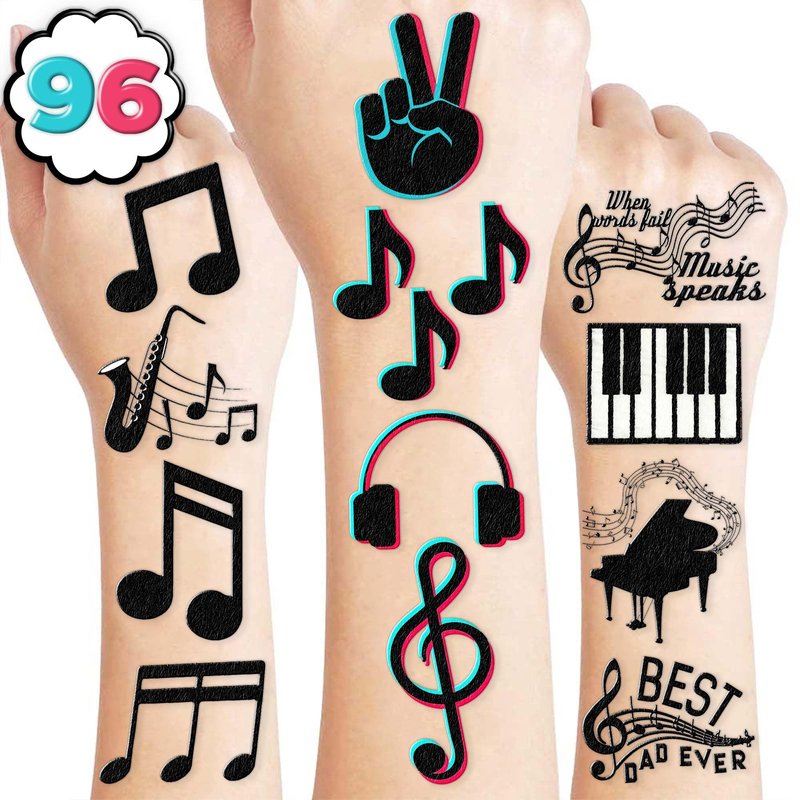 🎹 YOU WILL GET: You will be provided with a set of eight sheets with 95 pieces that measure around 6.1 x 3.1 inches in dimension. With this package, you can make your special birthday celebration more delightful and cater to a gathering. This particular item would be an excellent choice to enhance children's birthday parties, musical theme parties, music theme parties, theme parties, and baby shower theme parties. 🎵 MUSIC MUSICAL PATTERN:Our electronic music tattoos bring joy to kids' lives with a range of songs, perfect for Christmas, birthdays, or music events. Experience the party atmosphere as if you were at a live musical performance, thanks to the music and energetic crowd. ♻️SAFE AND HIGH QUALITY: Our temporary tattoos are crafted with utmost care and precision using only the finest quality green and safety paper. This paper is made from non-toxic and ecologically safe materials, ensuring that our products are visually appealing and safe to use. We take great pride in the quality of our tattoos and make no compromises when it comes to the safety of our customers. 📌USAGE: Before removing the tattoo, it's essential to take off the clear paper from the sheet. You can choose any covered surface like your arms, hands, face, or objects like a water bottle, purse, laptop, or phone case to apply the product. Wait for 20 to 30 seconds, sprinkle a few drops of water on the tattoo, and take off the backing paper. You'll end up with a gorgeous, velvety tattoo that can be easily removed with baby oil, soap, or water. Go ahead and enjoy your stunning new look! 💌CUSTOMER SERVICE: If you have sensitive skin, we advise against using this product. In case of any symptoms, please stop using it immediately. Our team is always here to help and make sure you have a positive shopping experience. Please do not hesitate to contact us for assistance.