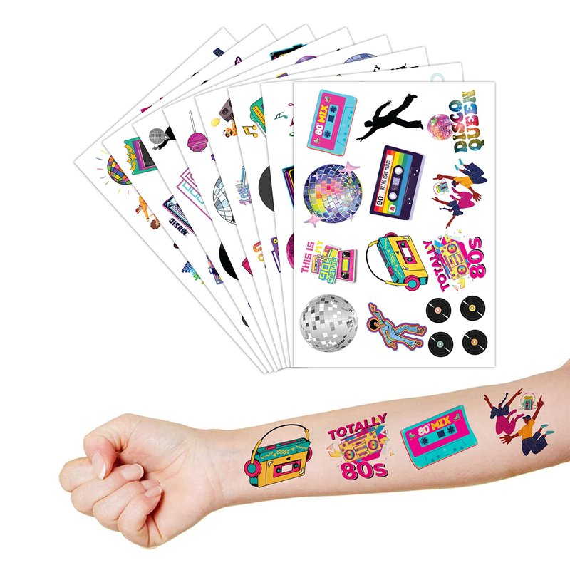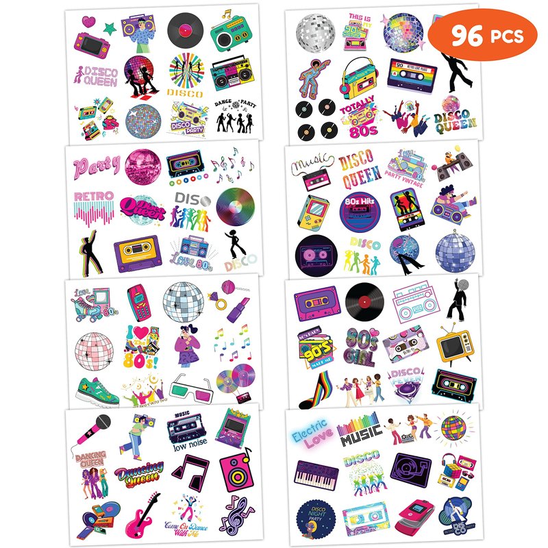 8 Sheets (96PCS) Disco Temporary Tattoos Birthday Party Decorations Supplies Tattoos Stickers Cute Party Favors Kids Girls Boys Gifts Classroom School Prizes Themed