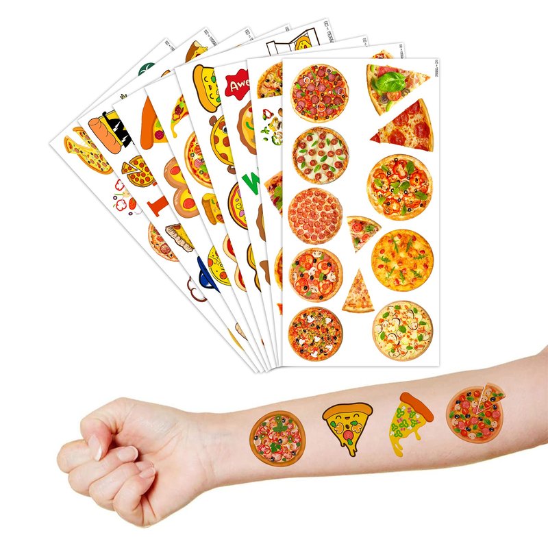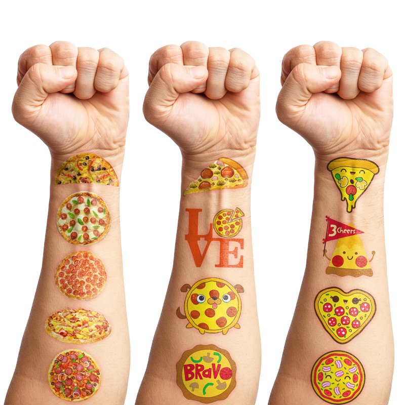 - Cute And Funny Cute Pizza Fast Food Mushroom Cheese Themed Tattoos: Pizza Fast food Temporary tattoos Stickers, features an assortment of themed characters, colors are bright, and designs are adorable, use them as party favors and your kids will love. Perfect for themed party, birthday activities, school reward and other party events. They will be your kids' favorite small gifts.
