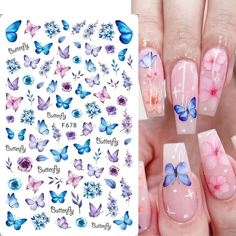8 Sheets Blue Butterfly Nail Art Stickers Decals JMEOWIO Self Adhesive Pegatinas Uñas Blue Black Gold Butterfly Spring Summer Design Manicure Tips Nail Decoration for Women Girls