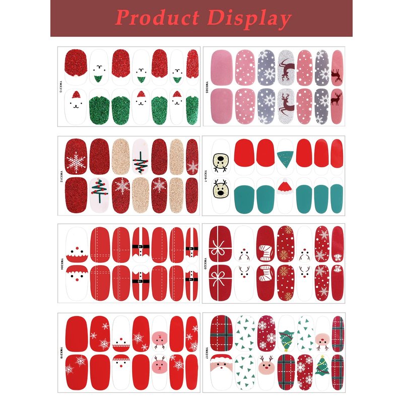 - 【Exquisite Package】You will get 8 sheets Christmas nail polish strip. Includes all sorts of classic Christmas-style patterns: Christmas tree, snowflake, deer, bell, gift, sock etc. A good choice for birthday Christmas gift holiday present for your family.