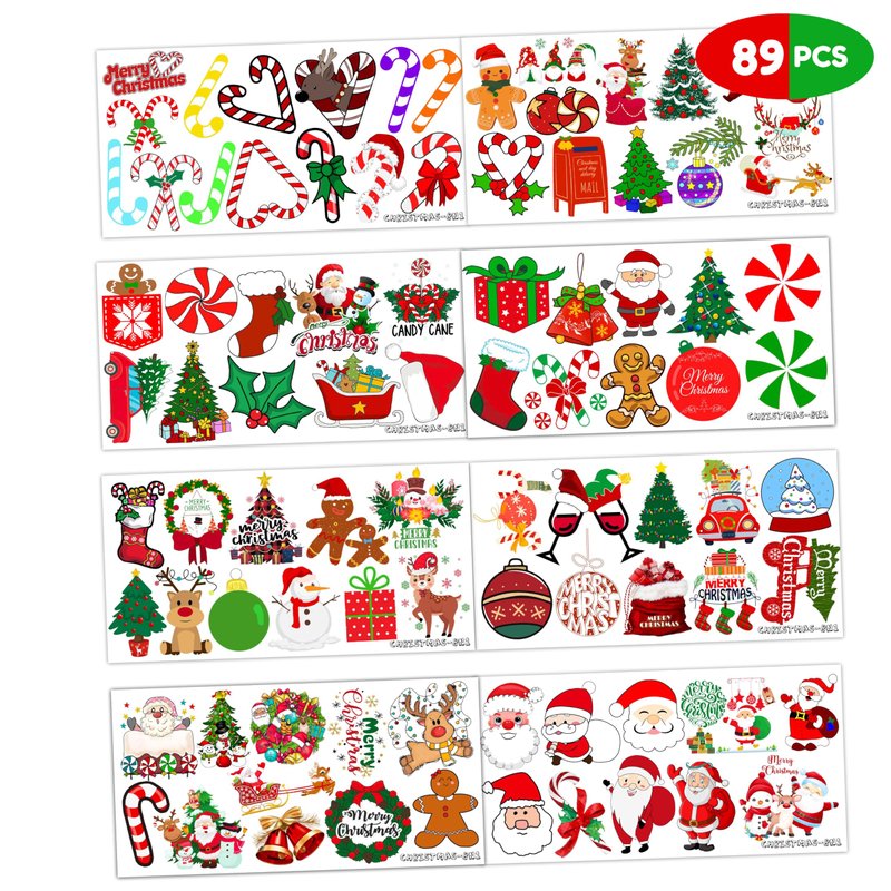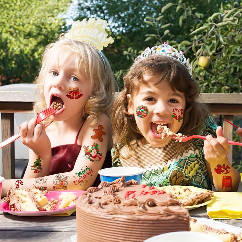 - 🎄8 SHEETS TEMPORARY TATTOO CHRISTMAS : Make your holiday party a hit 8 sheets by 6.1 x 3.1 inches of Christmas-themed temporary tattoos for kids! You'll get 89 pieces of regular stickers, enough for all the children attending. These fun tattoos will add some sparkle to your festivities and bring joy to the little ones.