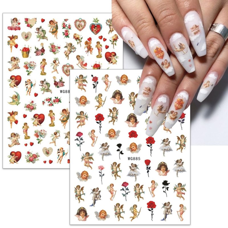 - Wide Occasions: Self-adhesive cupid angel nail stickers are very suitable for decoration of your fingernails, not only for nail art decorations, 3d Valentines design nail decals are also for decoration of your mobile phone cases, greeting cards, body art, etc. Suitable for home use and professional nail salon.