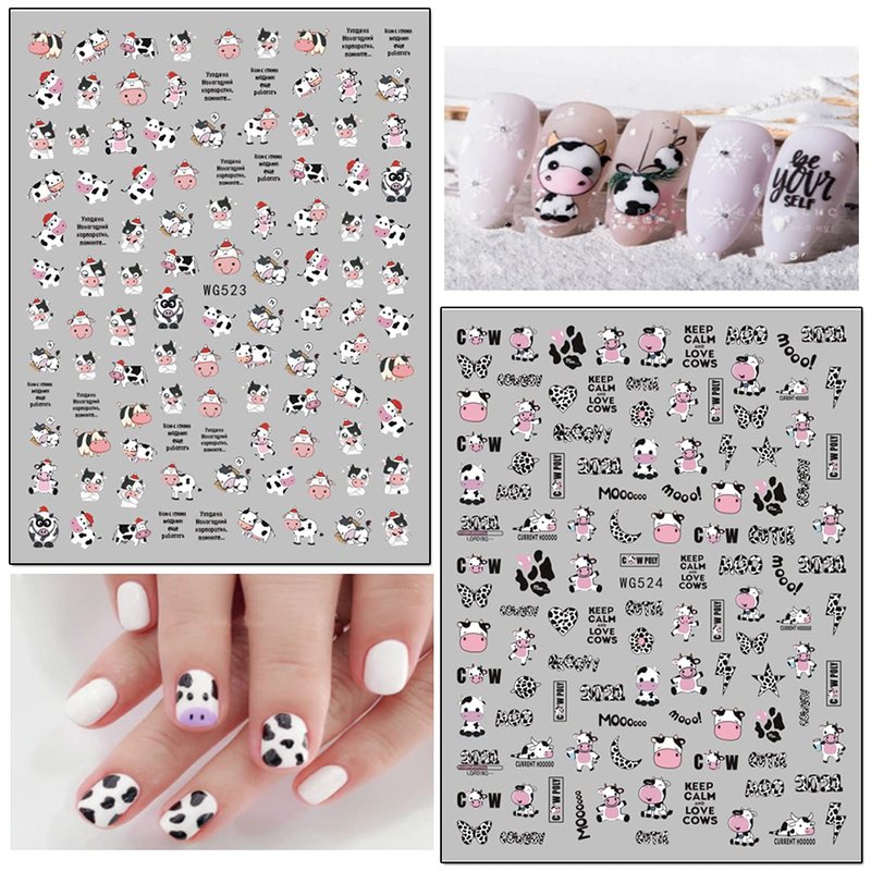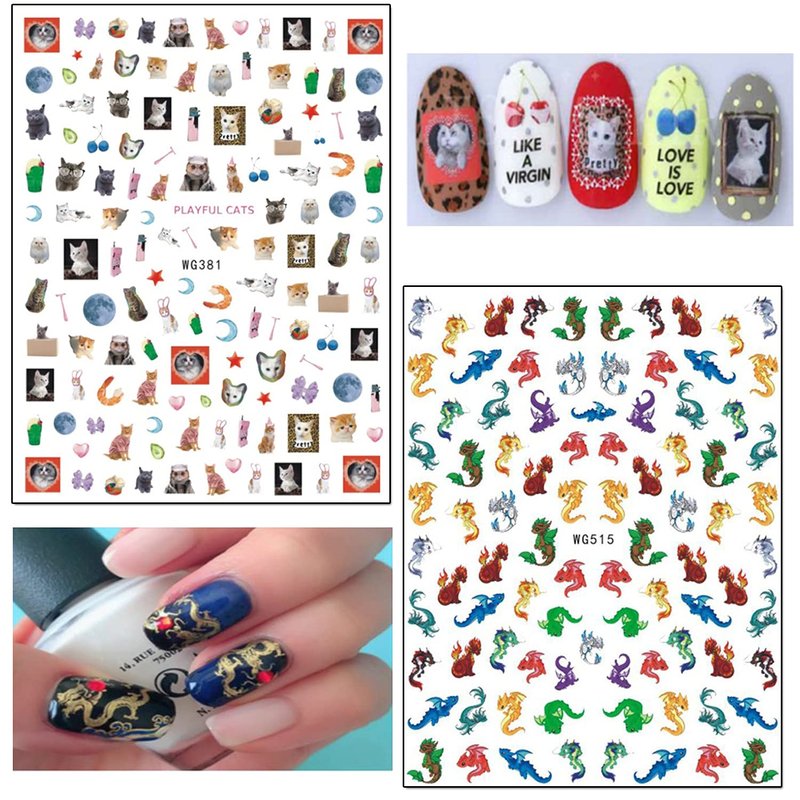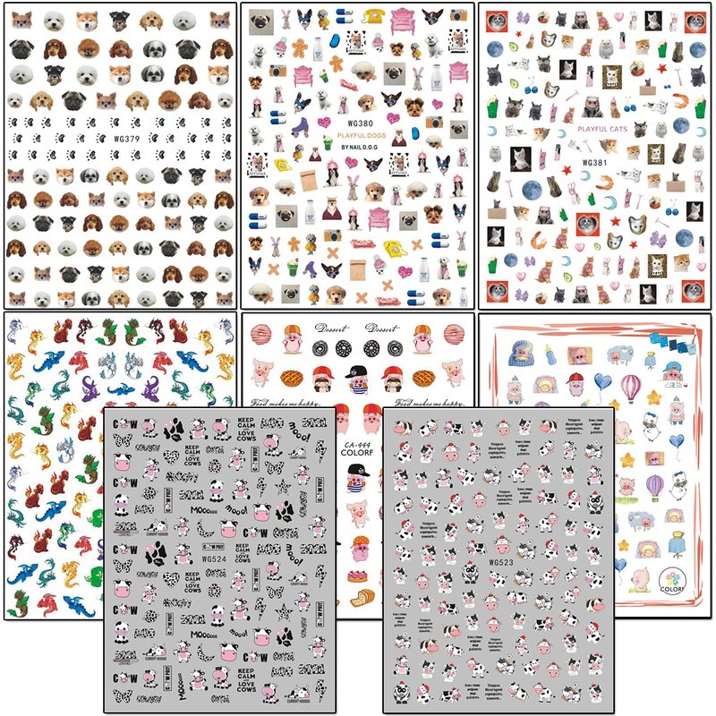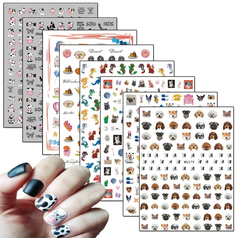 - Quantity: 8 Sheets cute animals nail art stickers self-adhesive nail art design, each paper measure 4.1 x 3.1 inches. Contains a variety of cute patterns: milk cows, dog, cat, pig, dragon, etc. You have more cute little animal nail stickers to decorate your nails.