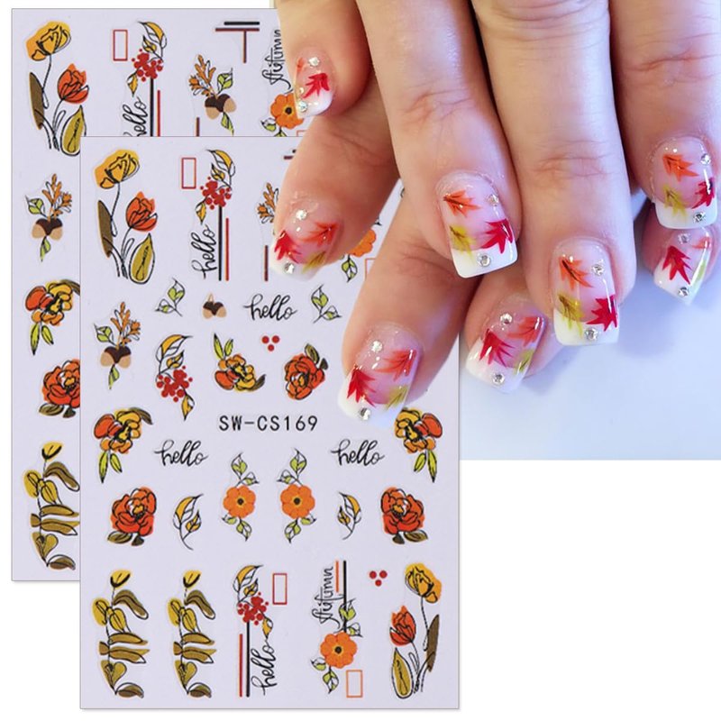 - Easy to use: Fall maple leaves nail design stickers are self-adhesive; so just choose you liked pattern, just use tweezers peel off to stick it gently your nail, applying over a base coat or nail polish will be better.